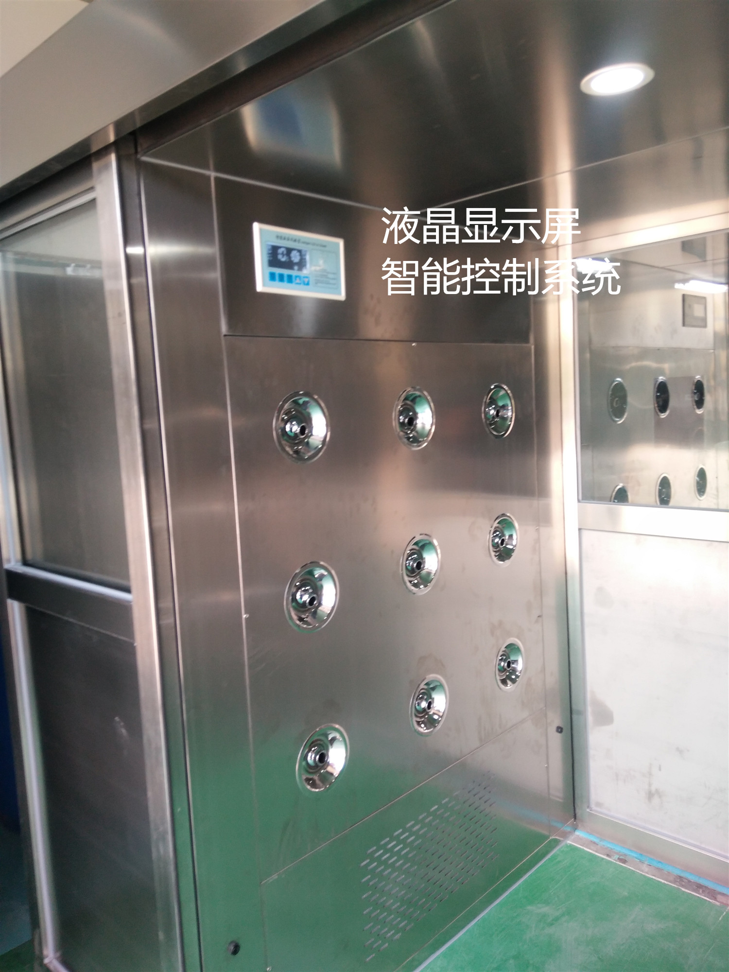 3、自動(dòng)門貨淋室箱體采用優(yōu)質(zhì)的冷軋鋼板制造,表面靜電噴塑處理,美觀大方,內(nèi)底板全不銹鋼板制做耐磨擦,易清潔。