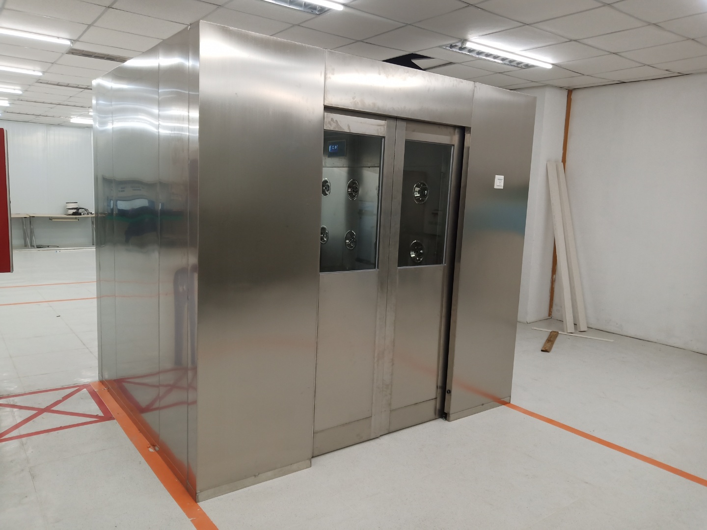 紅外感應吹淋開始(語音提示吹淋過程)---------吹淋完畢(語音提示)-----進入潔凈室(內(nèi)門自動解鎖)